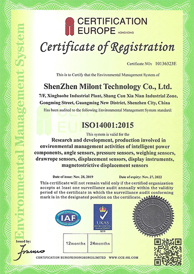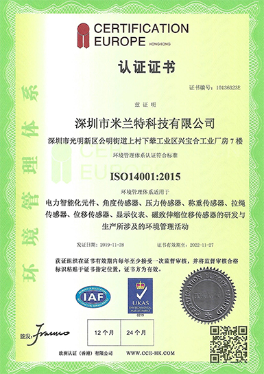 米蘭特ISO環(huán)境管理體系認(rèn)證證書