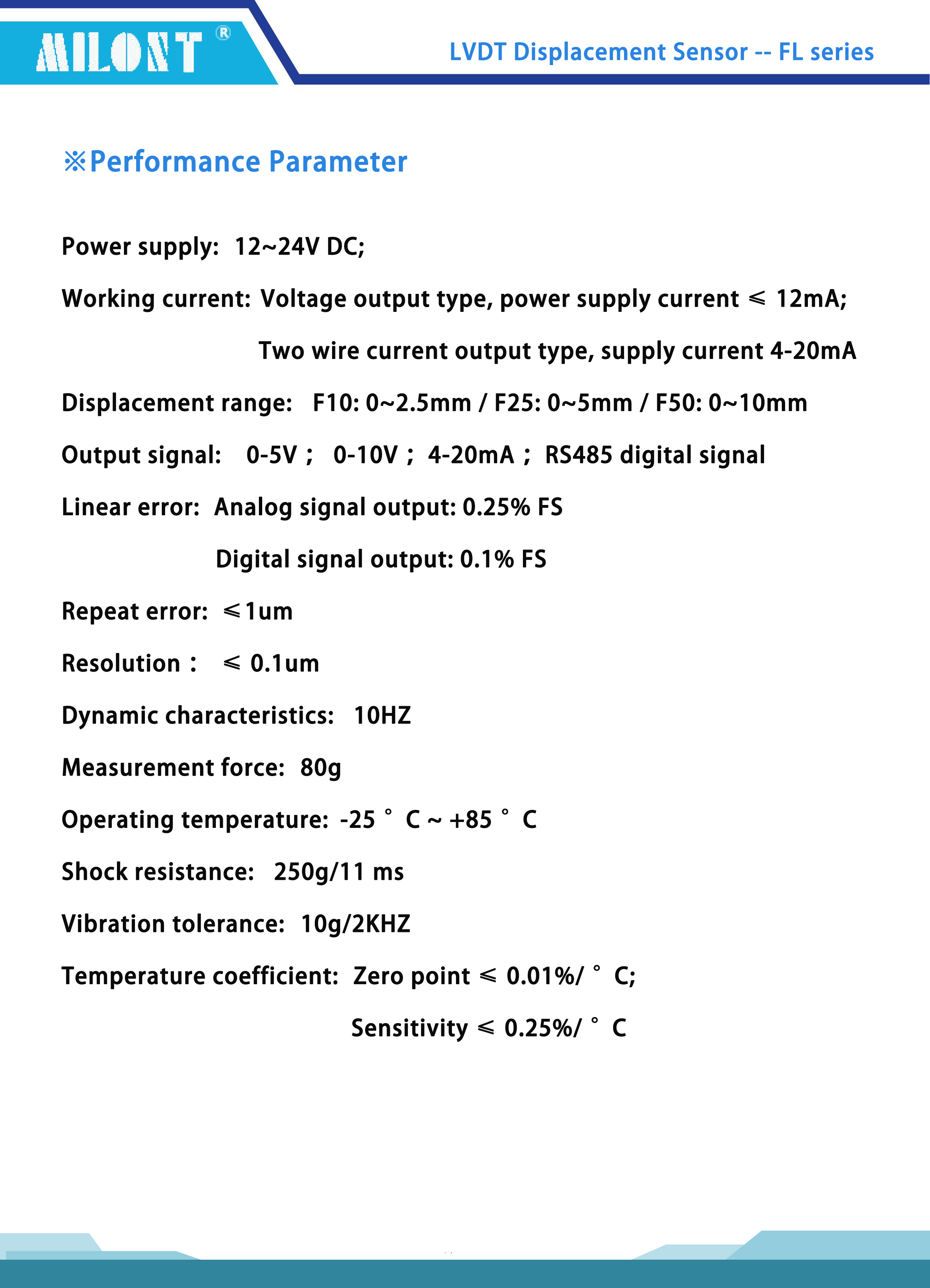 Zero point ≤ 0.01%/ ° C; Sensitivity ≤ 025%/ ° C?