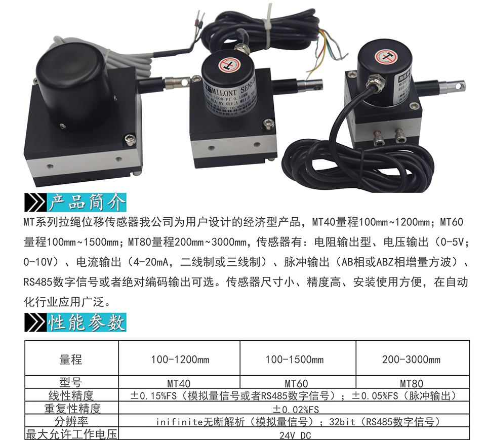 米蘭特MT40/60/80系列拉繩位移傳感器拉線編碼器