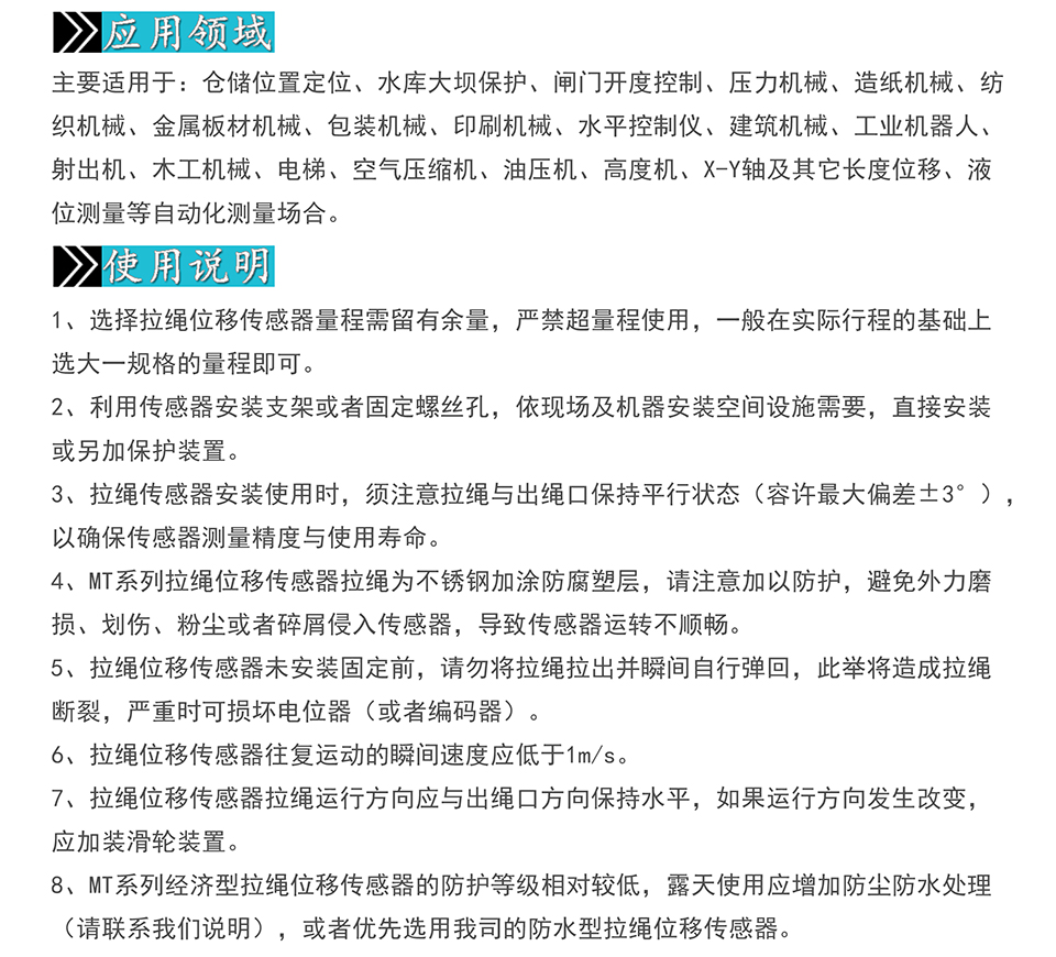 米蘭特MT拉繩位移傳感器安裝比較簡(jiǎn)便,主要用于各類自動(dòng)化機(jī)械設(shè)備位移測(cè)量與位置定位。