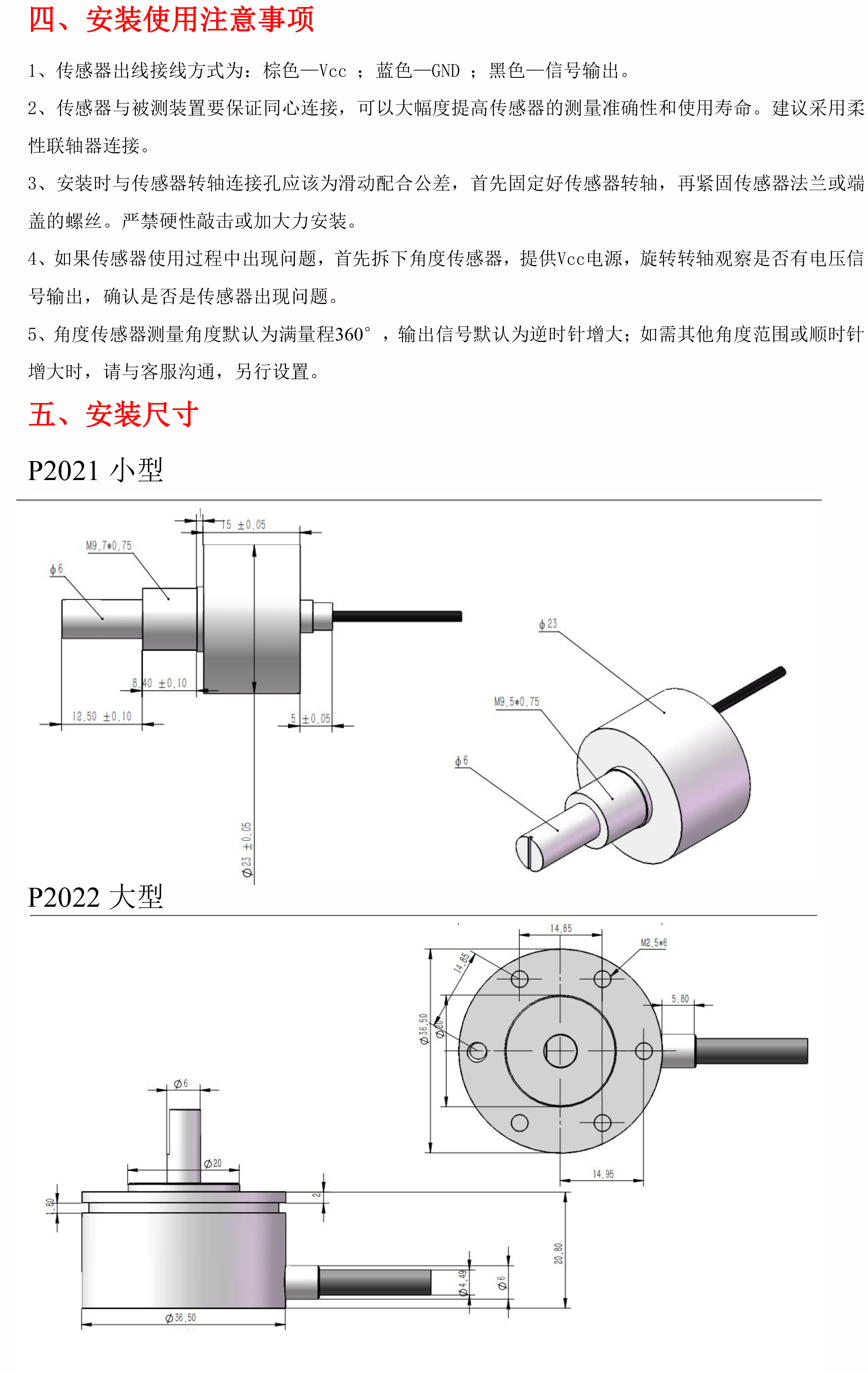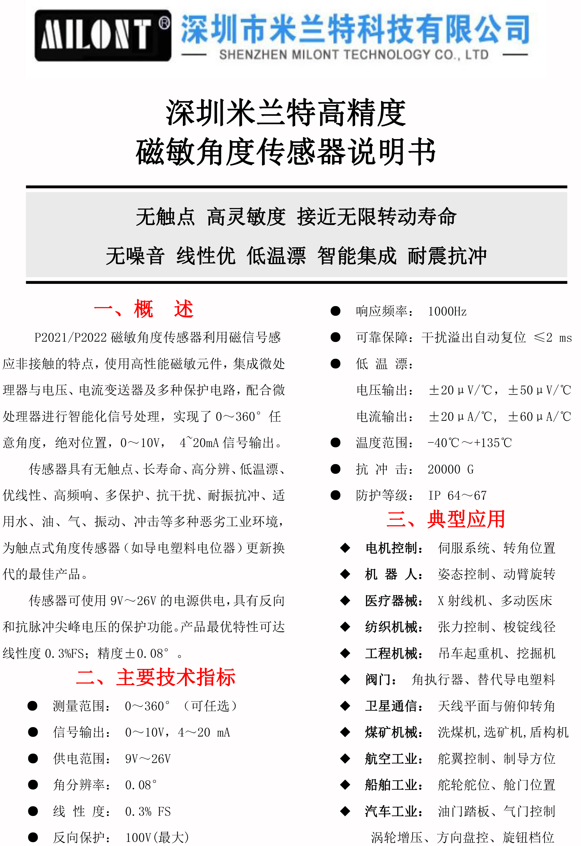 P2021角度傳感器磁敏式傳感器霍爾傳感器非接觸式角度尺 0-360°
