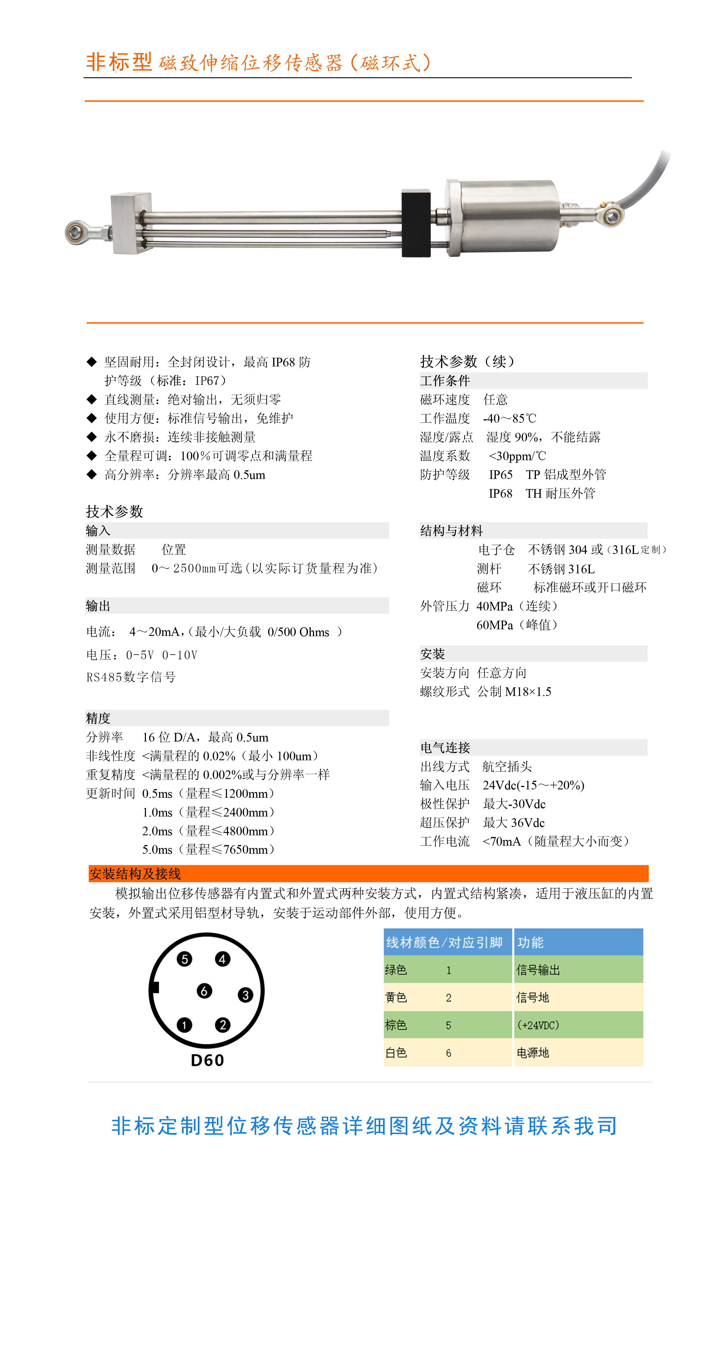 非標定制型不銹鋼防水拉桿式磁致伸縮位移傳感器,可以長期水下使用,適用于各種惡劣環(huán)境使用